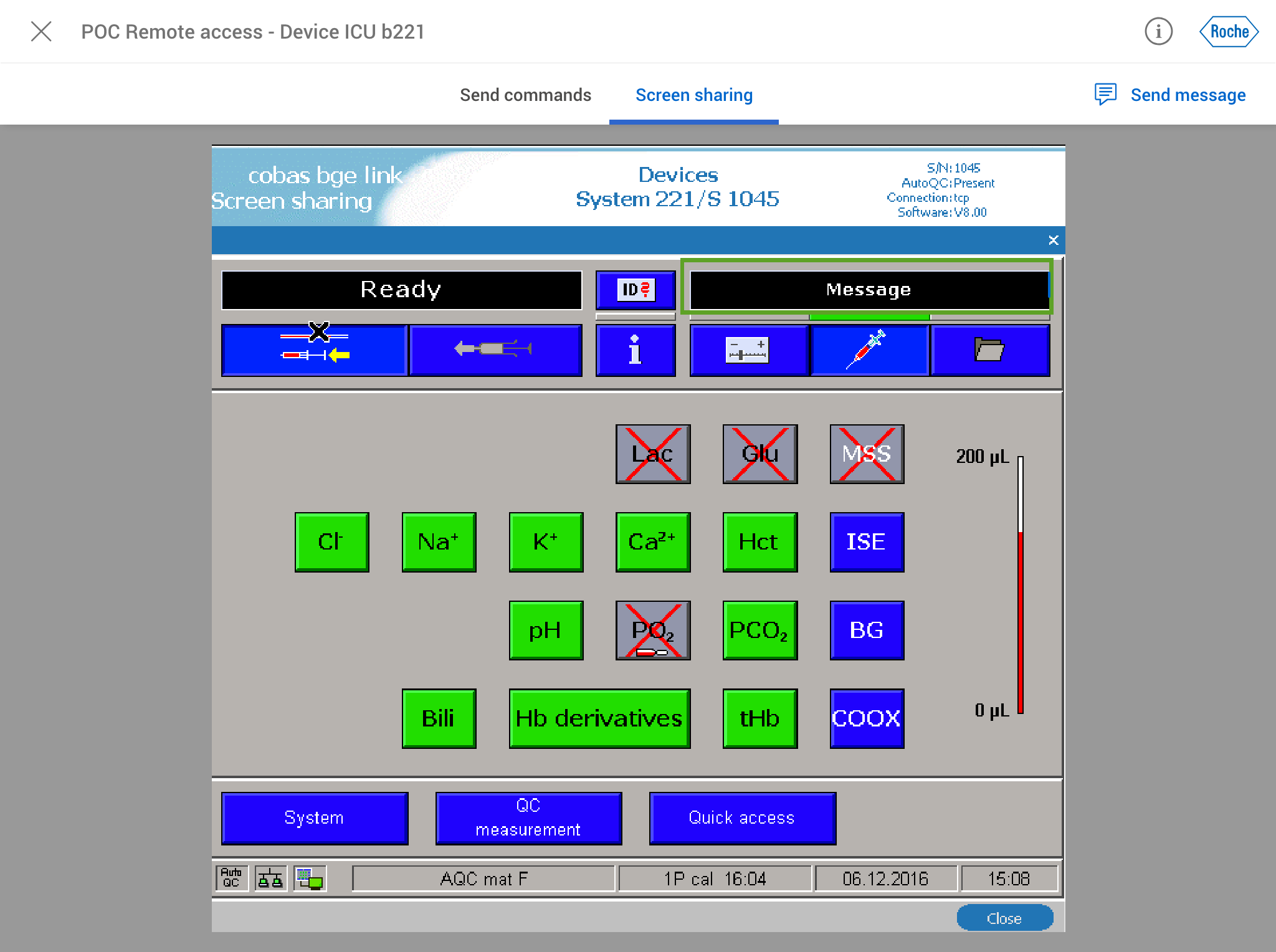 Remotely control all blood gas analyzers - send commands, monitor paramenters and QC status, manage fluids levels and calibratitions and if necessary remotely control the analyzer's screen.