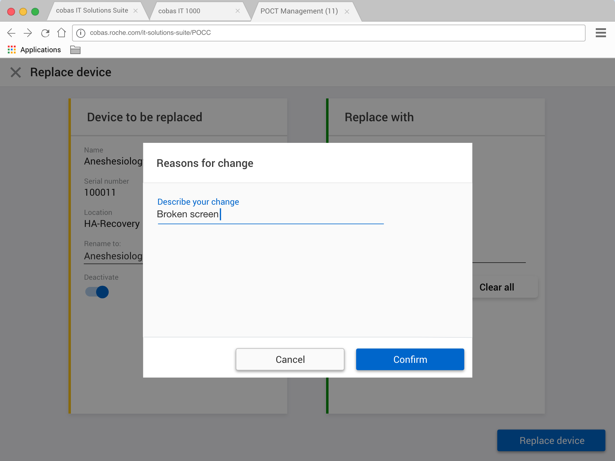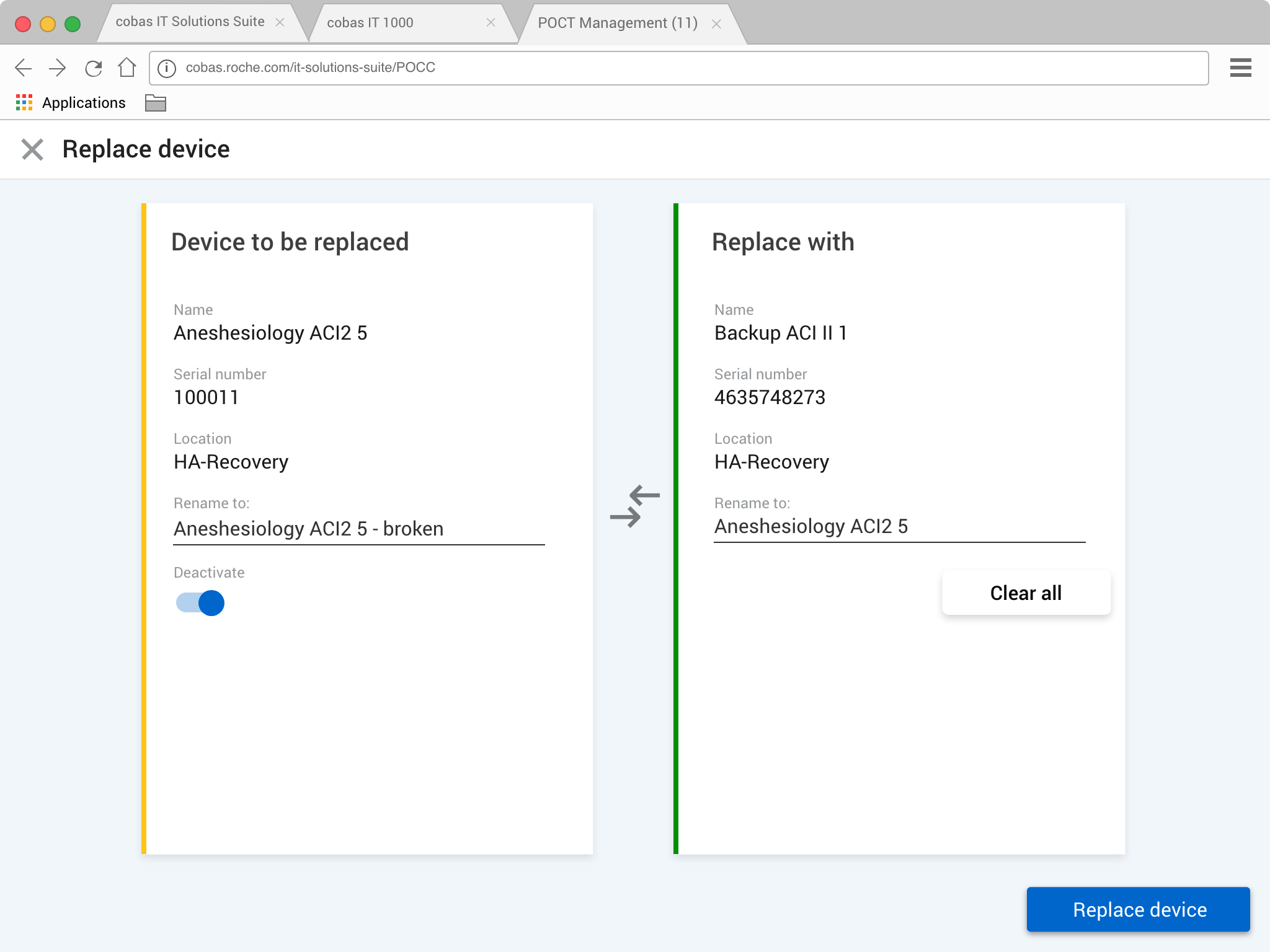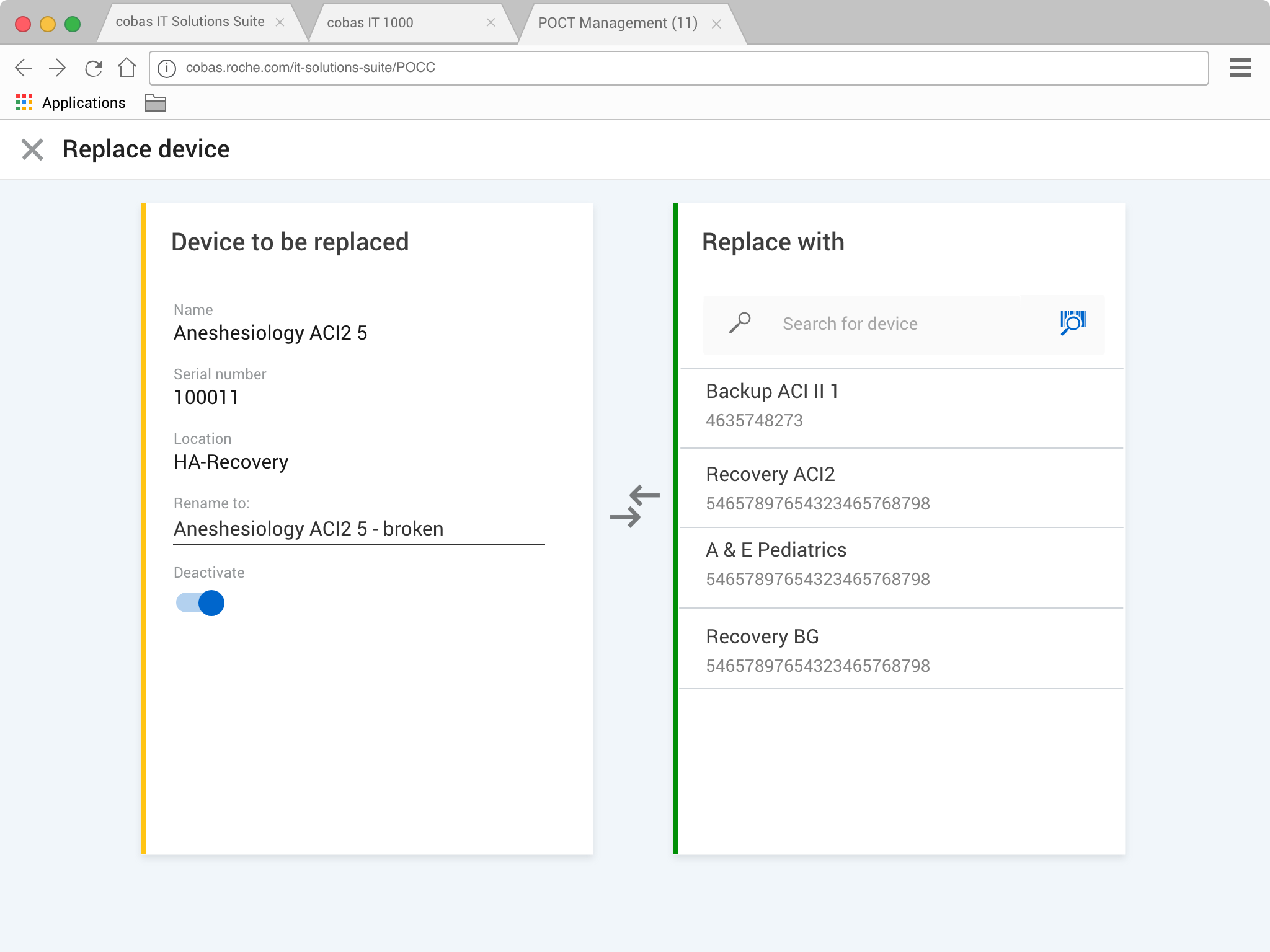 It intelligently renames the devices, deactivates the old broken device, relocates the replacement to the correct ward and synchronizes and patients.